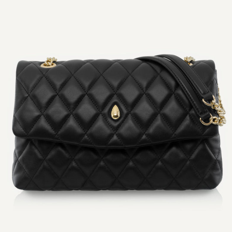 The Archiduchesse Quilted Bag in Black combines classic French sophistication with a modern quilted pattern. Crafted from high-quality leather, its sleek silhouette and gold-tone accents create a polished accessory that enhances any outfit, from casual chic to evening elegance.