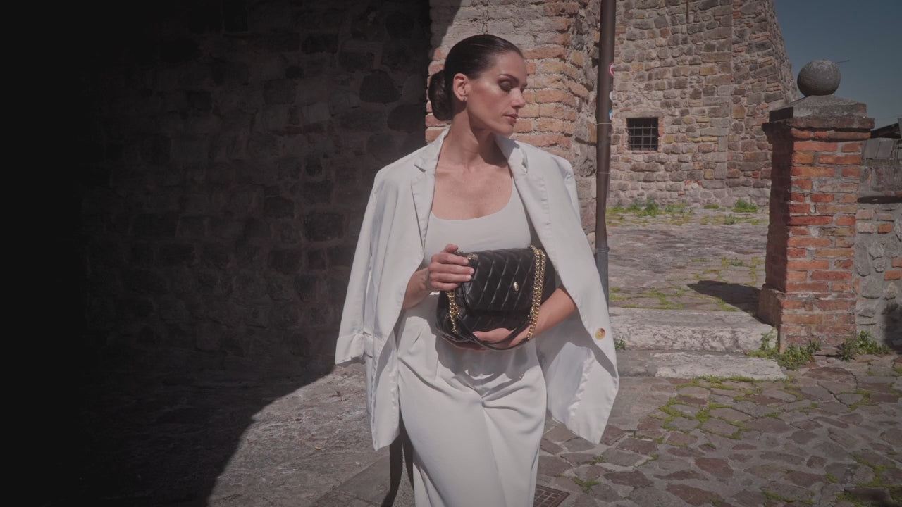 Handcrafted in Italy, this quilted bag showcases French design excellence with subtle Italian artisanal expertise, resulting in a luxurious handbag that balances style and practicality.