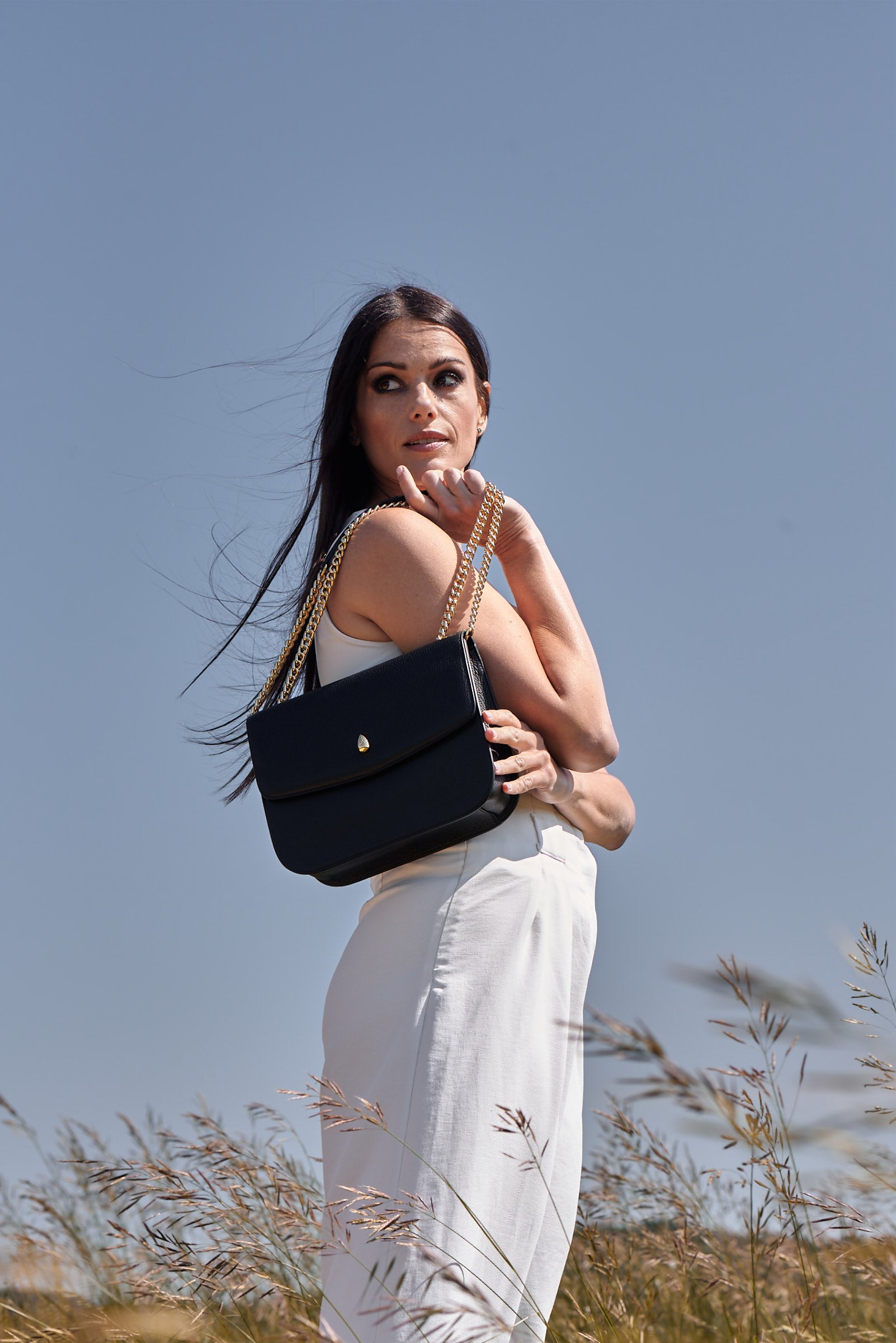Handcrafted in Italy, this bag combines French design finesse with subtle Italian artisanal expertise, offering a premium handbag that is both stylish and functional.